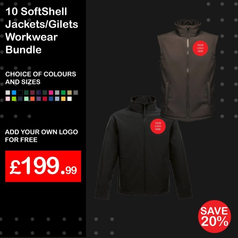 10 Softshell Jackets or Gilets Workwear Bundle – Front Logo Embroidered