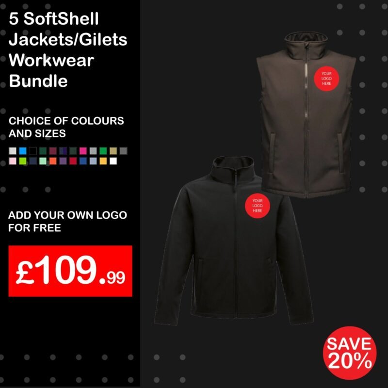 5 Softshell Jackets or Gilets Workwear Bundle – front logo embroidered