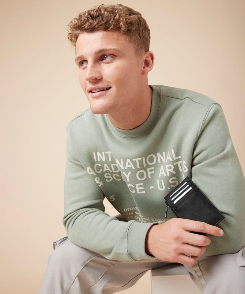TearAway label for ease of rebranding. Saffiano fine grain. Contemporary slimline design. Can be decorated front and rear. Holds 4 credit cards. Soft-touch lining.