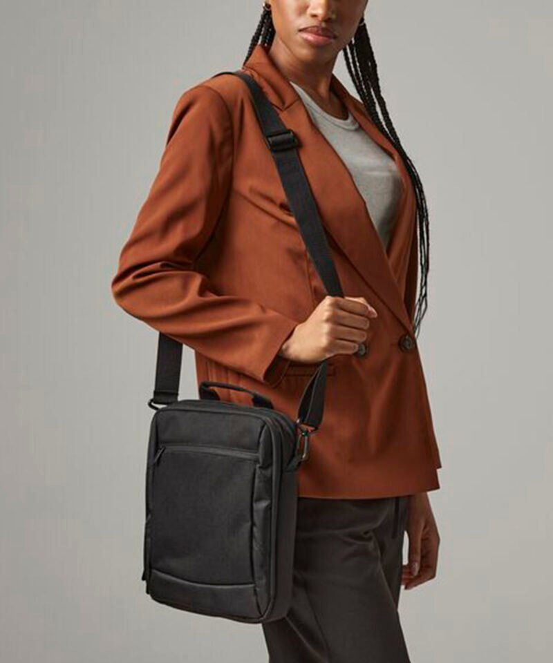 iPad/Tablet compatible. Multiple pockets. Grab handle. EasyPocket for ease of decoration. Detachable adjustable shoulder strap.