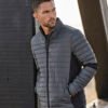 The cool Hooded crossover jacket features stunning detailing such as a chest pocket with zip and an adjustable hood, making it both practical and fashionable. For a sporty look, it combines a light polyester 300T with padding and softshell. The jacket has an adjustable hem, elastic cuffs, two side pockets and an inner pocket.