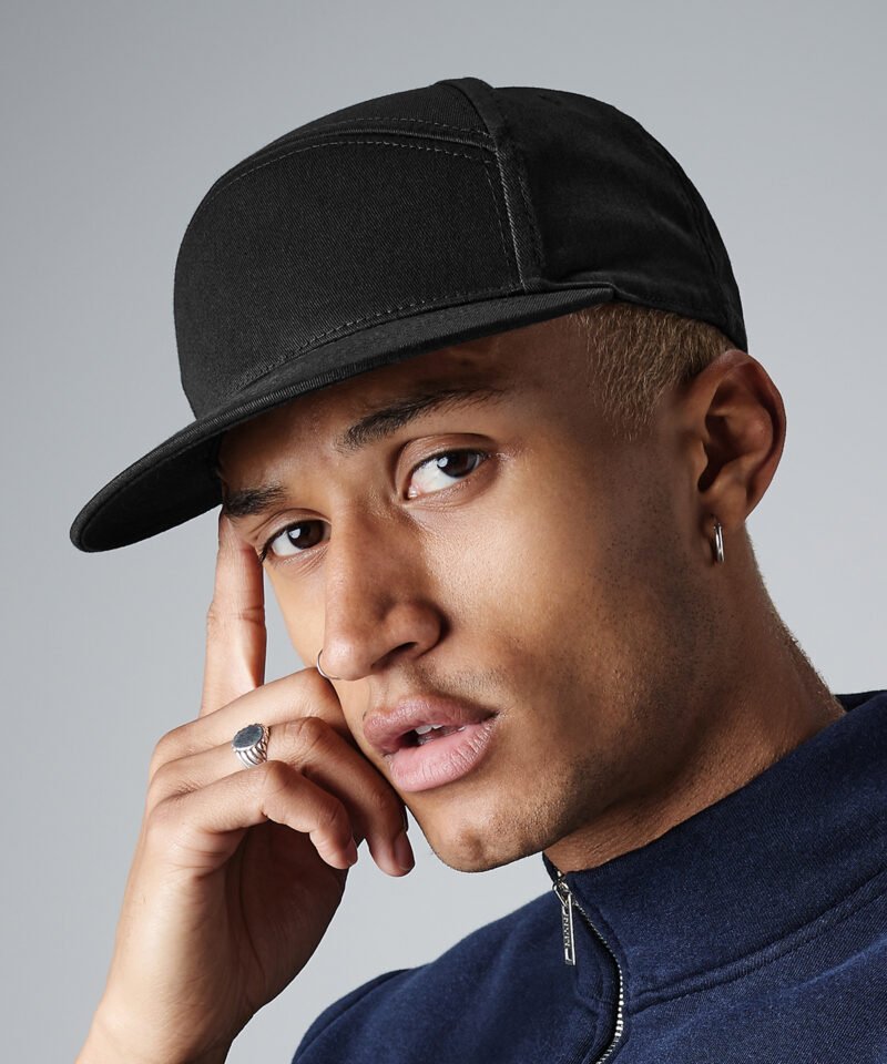 Tearaway label for ease of rebranding. Structured H-panel design. Flat peak. Retro style Snapback size adjuster. Stitched ventilation eyelets. BSCI certified. Reach certified.