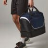Detachable adjustable shoulder strap with pad. Shoe tunnel/wet pocket. Internal valuables pocket. Elasticated bottle loops. Zippered end pockets. Internal mesh pockets. Padded hand grip.