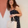 Cotton carry handles. Gold shimmer thread detail. Handle length – 55cm.