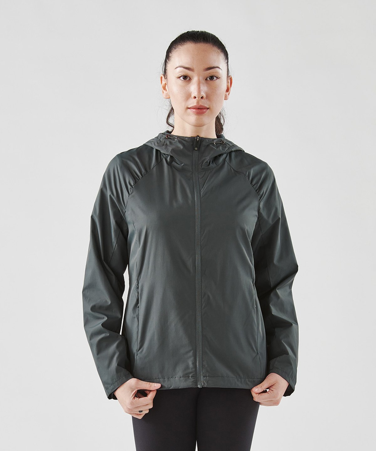Urban-inspired and outdoor-ready, the ultra lightweight Women’s Pacifica lightweight jacket features a sleek silhouette, back mesh lined vent for enhanced ventilation and articulated elbows for a full range of movement. The attached hood protects from unexpected rain showers and zipped hand pockets securely and conveniently store personal items. Articulated action shoulders provide an optimal range of motion.