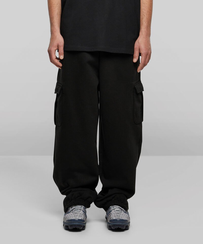 These men’s sweatpants offer patched cargo pockets and a convincing 90s look. They are equipped with an elastic waistband and elastic cuffs, while also featuring additional zips, and the loose fit completes the picture harmoniously. The sweatpants are made from extra-heavy brushed fleece, which can further be refined via flex or screen printing.