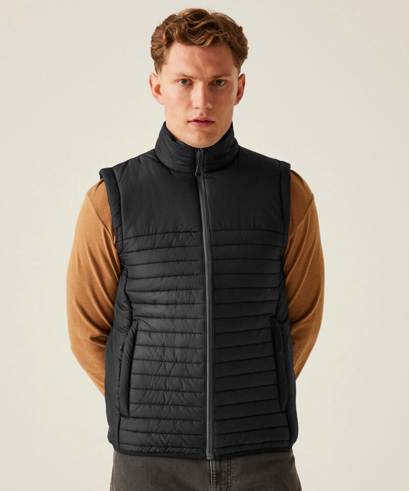 100% Recycled polyester interest face fabric with water-repellent cire finish. Recycled Thermoguard 160gsm insulation, and recycled polyester lining. Stretch binding to hem. 2 zipped lower pockets. Easily compressible. .