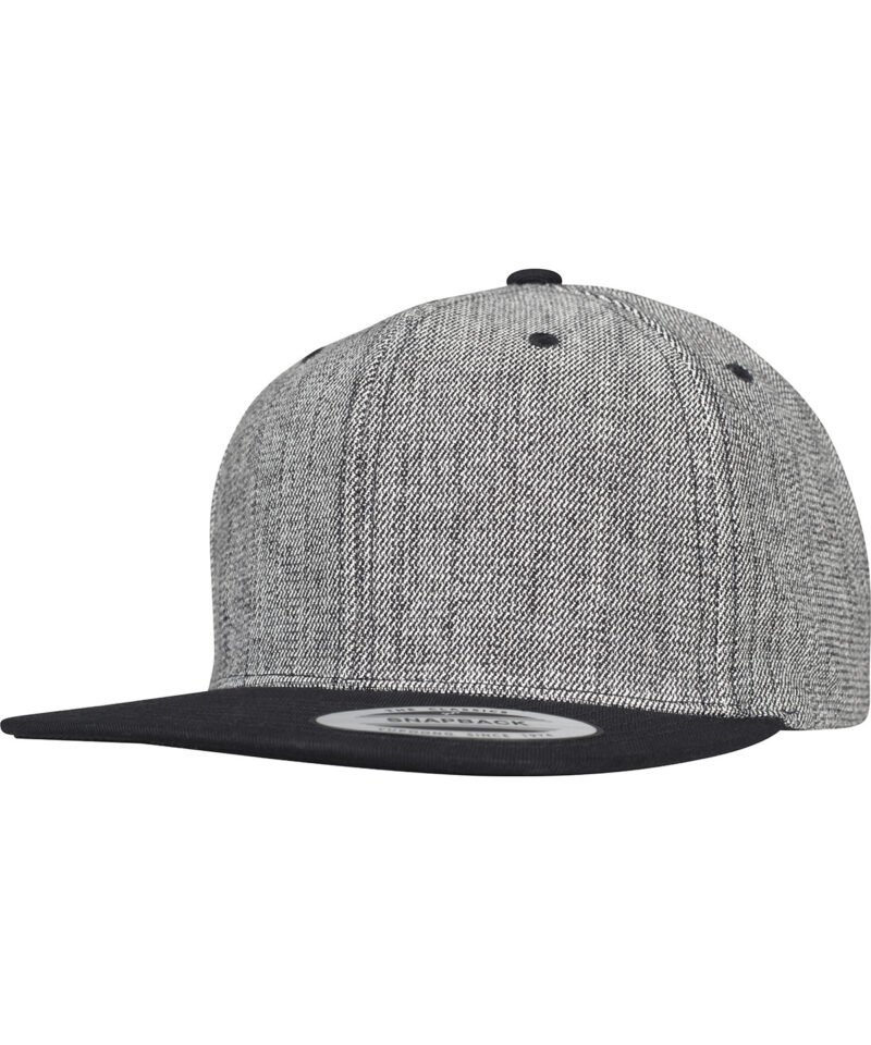 Melange solid snapback. Classy cotton twill. Fine melange look. Flat brim in black. Typical snap closure.